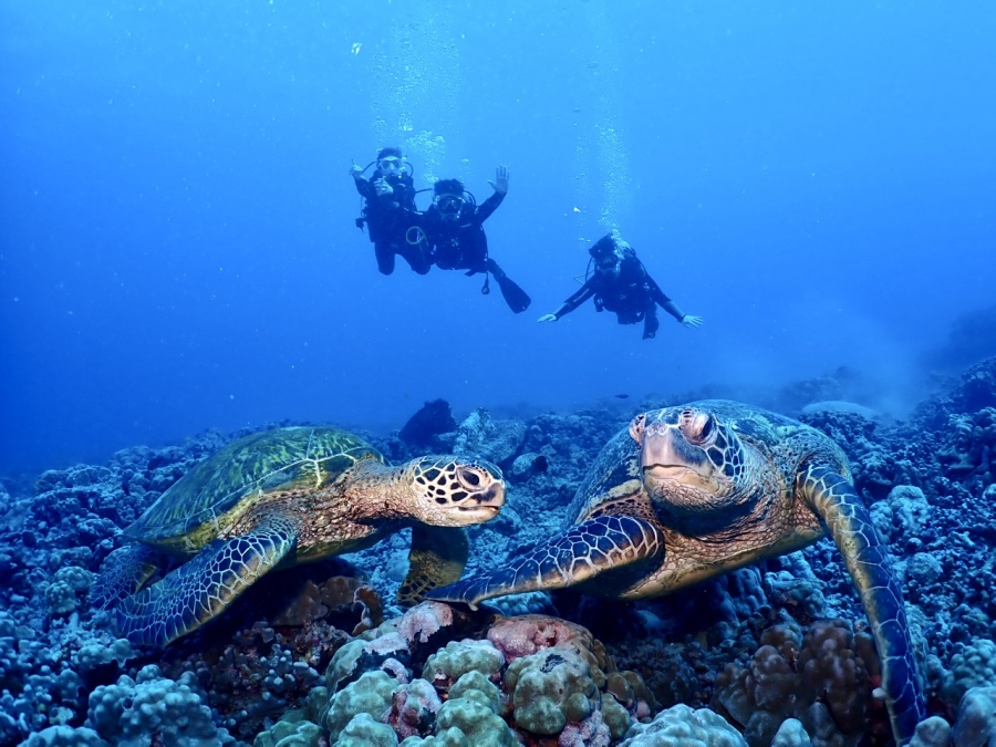 ウミガメにも高確率で出会えるハワイの海で、ダイビングを始めましょう。