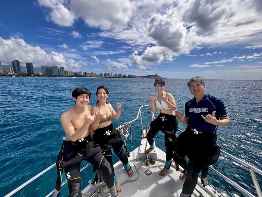今年はワイキキ・アラモアナ沖ボートダイビングコースへ。
