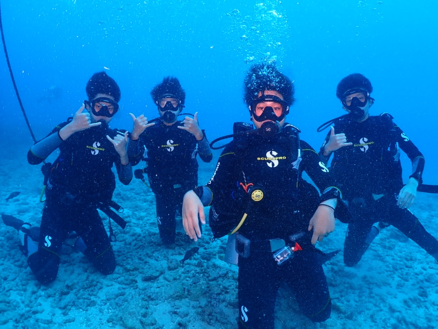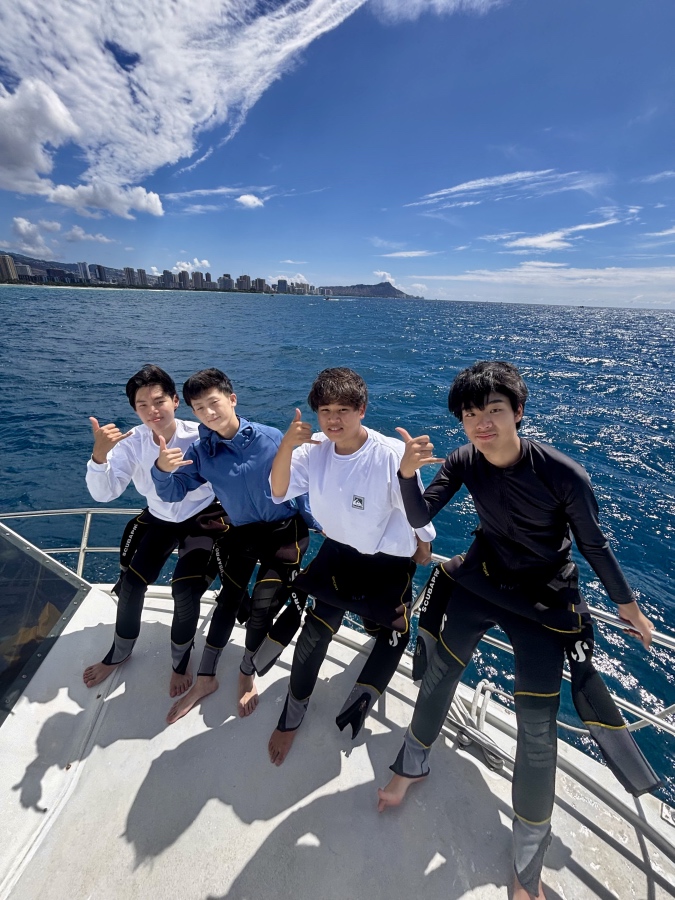 修学旅行でハワイにお越しの高校生4人組と体験ダイビングコースへ。