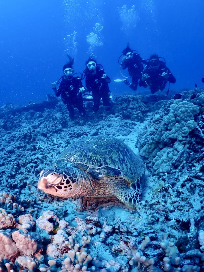 耳抜きができない辛い思い出だけでなく、スキューバダイビングの楽しい思い出、ハワイのウミガメに出会えた思い出を持って帰っていただくことができ、よかったです!