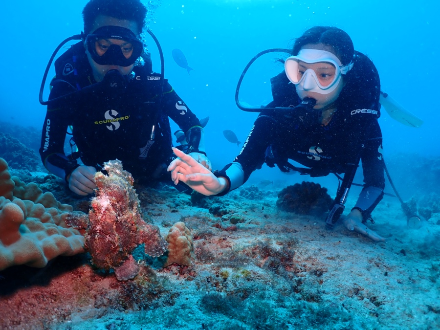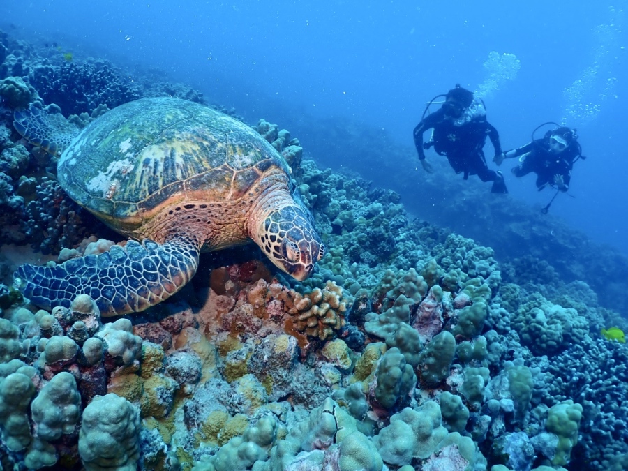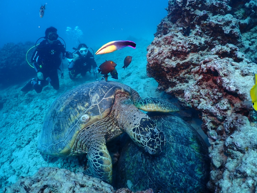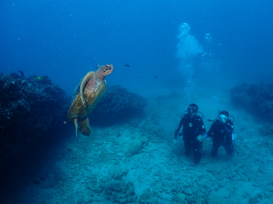 それ以外にもヘラヤガラやマンジュウヒトデ、ヨスジフエダイの群れを見ながら、もちろんアオウミガメにも出会えました!
