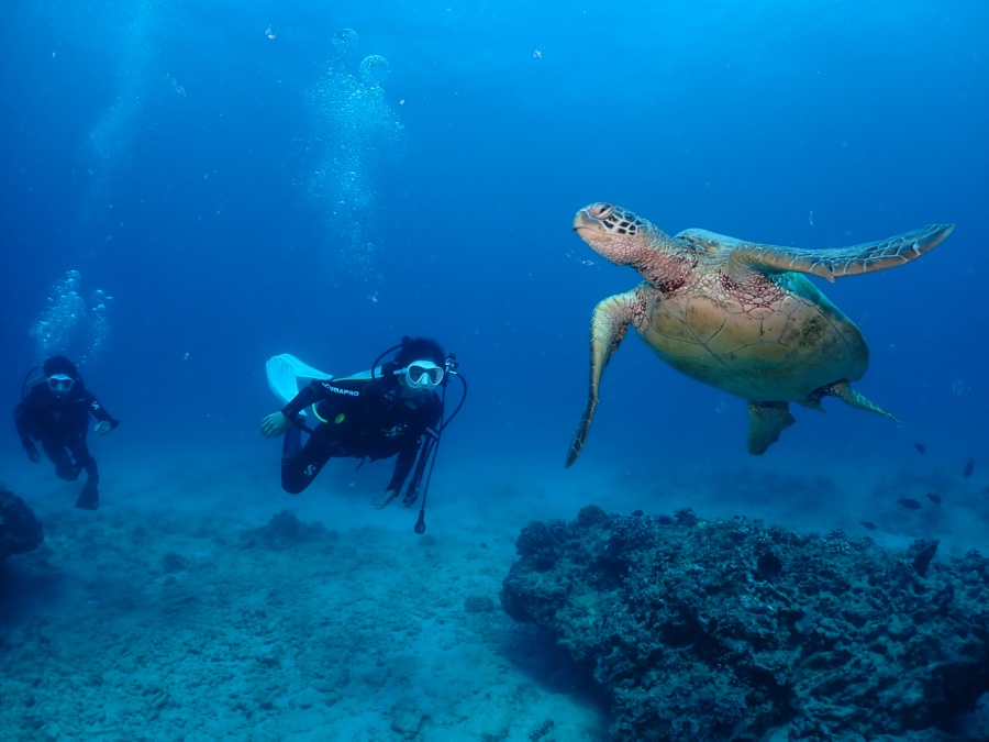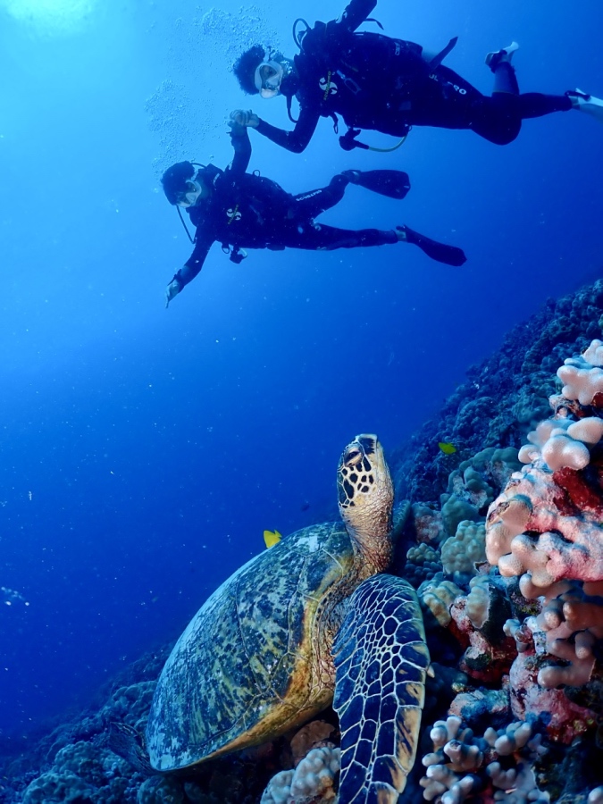 ウミガメも2ダイブで13匹会うことができ、最後には手で作るバブルリングの練習も!