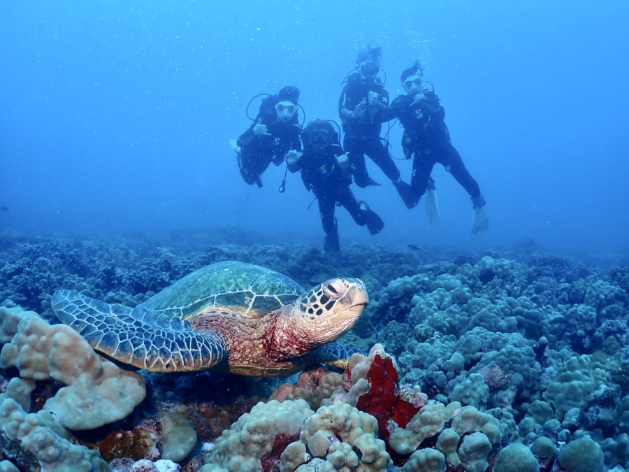 1ダイブ目はしっかり練習を行い、2ダイブ目でウミガメのいるリーフへ行けました。