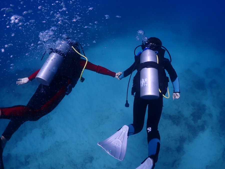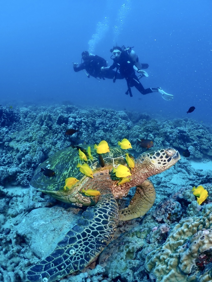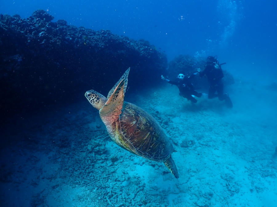 お二人ともダイビングもすごく上手で、私のアシストなしでスイスイ泳いでウミガメのところへ。