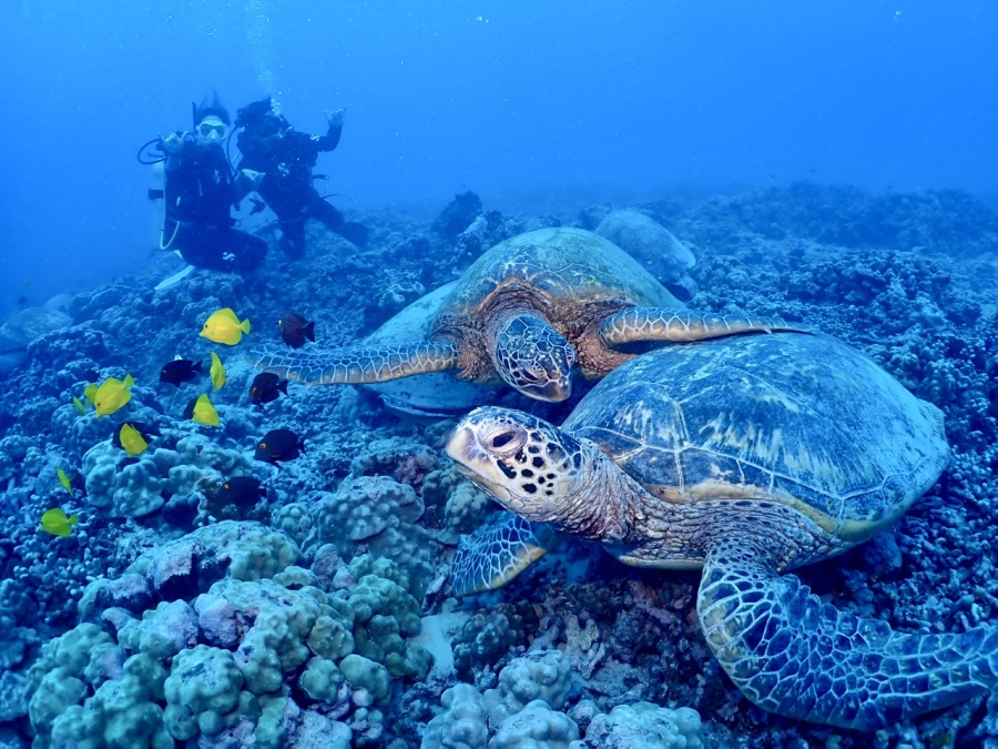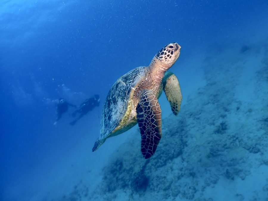 1ダイブ目のシークレットリーフはちょっと濁っていましたが、ウミガメと会えることができました。