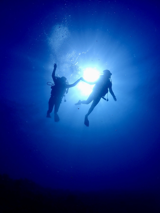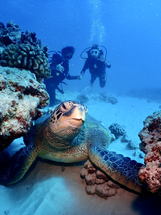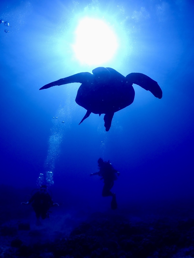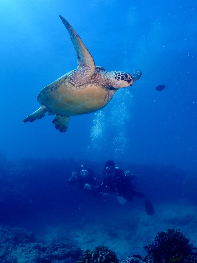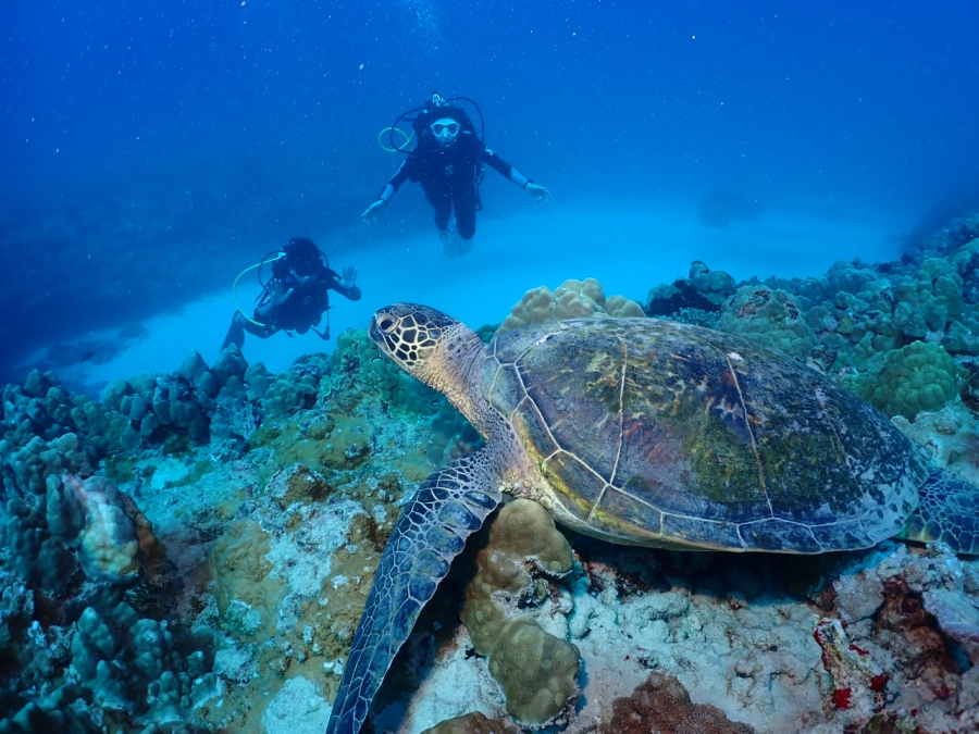 2ダイブで合計10匹以上のウミガメと出会え、一緒に泳げました。