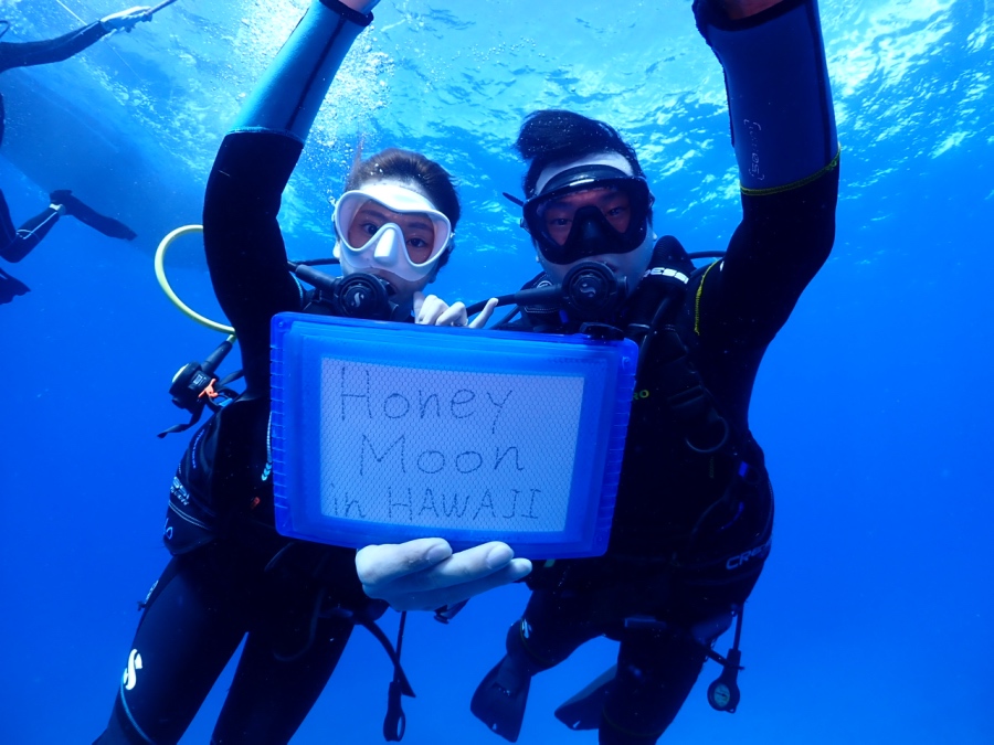 ハワイにハネムーンでお越しのお客様とFUN浅瀬リーフダイビングコースへ。