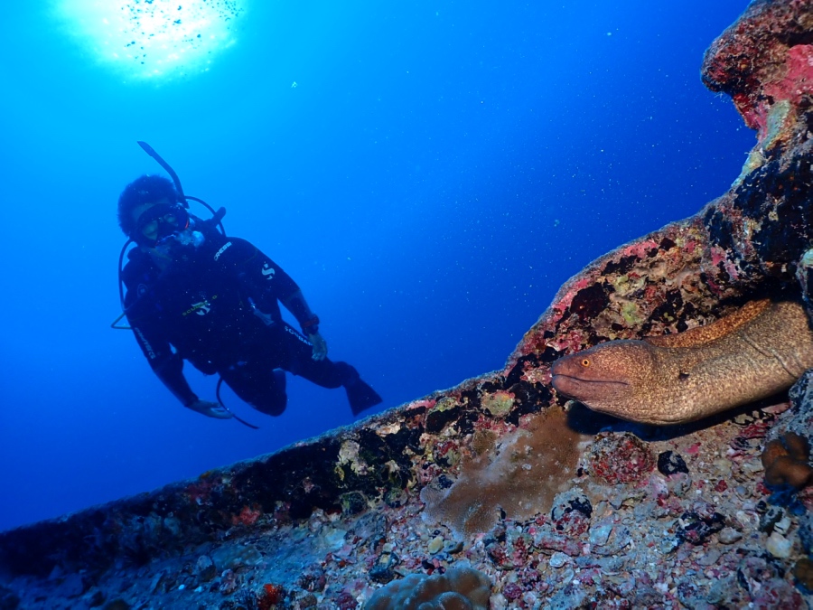 FUN沈船ダイビングコースでシータイガーとケワロパイプへ。