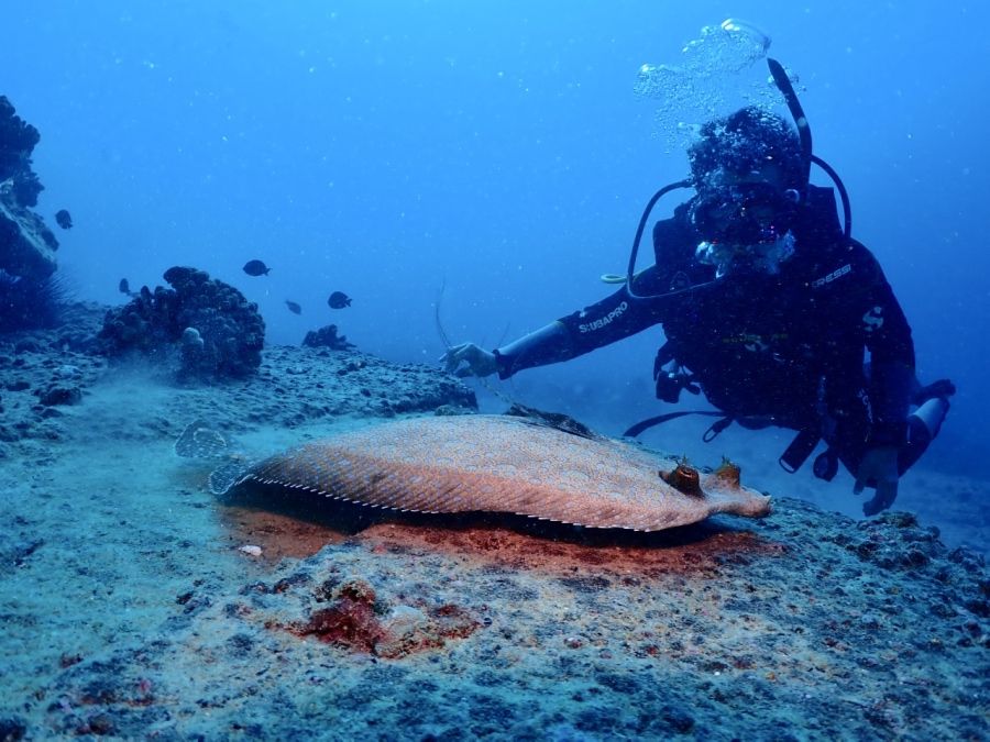 ケワロパイプにはハワイ固有種のRed Margin Nudibranchの卵塊があり、地面と同化しているモンダルマガレイなども紹介させていただきました。